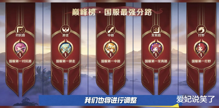 那以后巅峰第一,也会被拆为5个巅峰第一,刚好对应每一条分路。